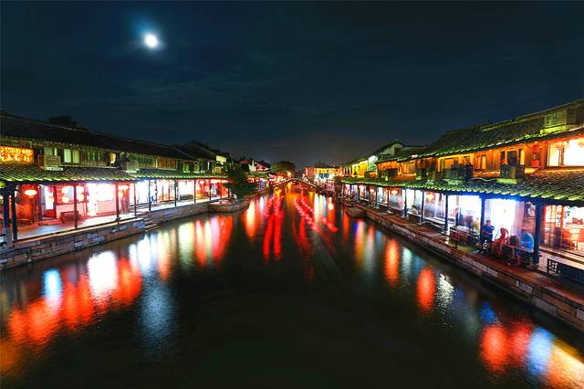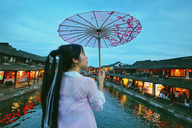 及至深夜,晚风习习,月色如水,店铺陆陆续续地打烊,行人越来越少,热闹了一整天的古镇终于开启了“休眠”模式,清清静静,成了西塘古镇最后的印象。