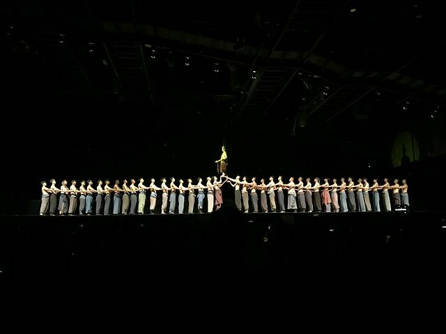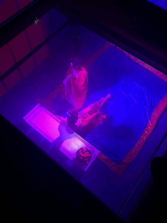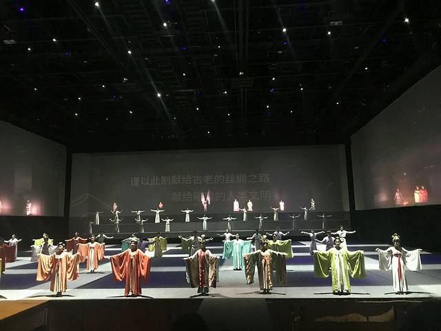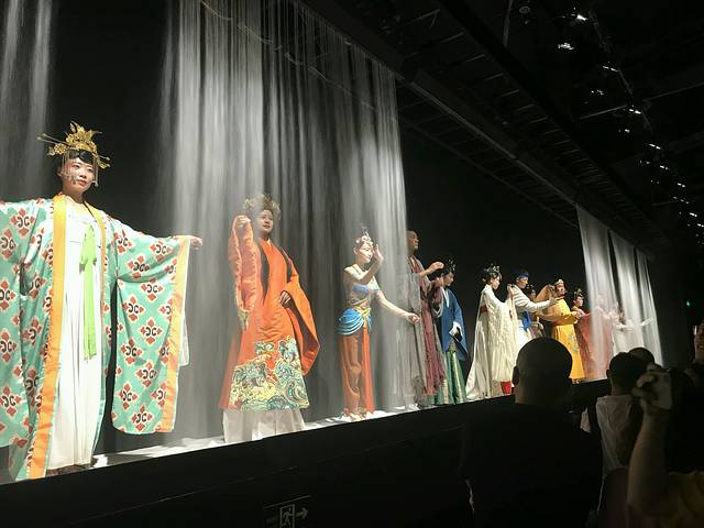 这是一场走着看的演出,4个演出厅,最后一个才是坐着看的。敦煌历史人物T台穿越而来,敦煌石窟壁画人物眼前重现,大型的实景演出,真人与全息电影的结合,目所能及的地方都是舞台。无论是从剧本本身的文化底蕴,还是从整个剧场的场景设计,灯光效果,衣冠服饰,都十分的令人震撼,甚至观看时候有些朋友多次动容,热泪盈眶。