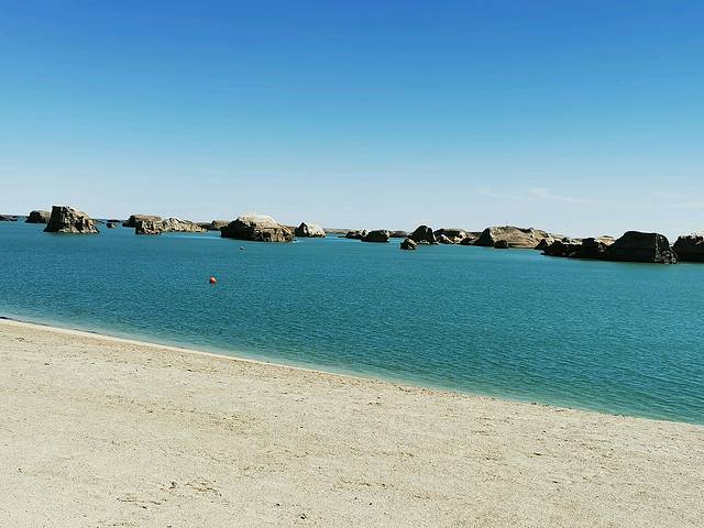 从雅丹地貌往南车程一个半小时,就是水上雅丹,全名:乌素特(水上)雅丹地质公园。雅丹风貌在大西北很多地方可见,有大柴旦南八仙雅丹地貌,还有玉门关西面的雅丹魔鬼城。但水上雅丹是独一无二的,在世界上也是唯一的。水上雅丹是因为吉乃尔湖面抬升,逐步淹没边缘的雅丹群,形成了独一无二的水上雅丹,就像一望无际的荒漠中凭空而出了一片“汪洋”。水上雅丹算是无人区的一个地方了,附近根本没有任何的人家,所以住宿和餐饮只在景区内有。住宿:景区内有个大酒店,还有房车基地,在网上都可预定。餐饮:景区内有一个清真餐厅,面积很大,正常营业。