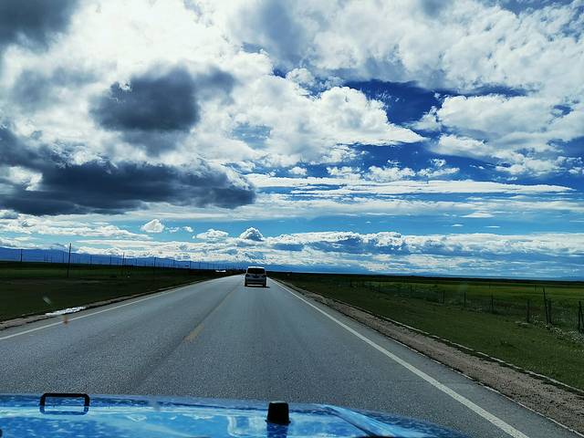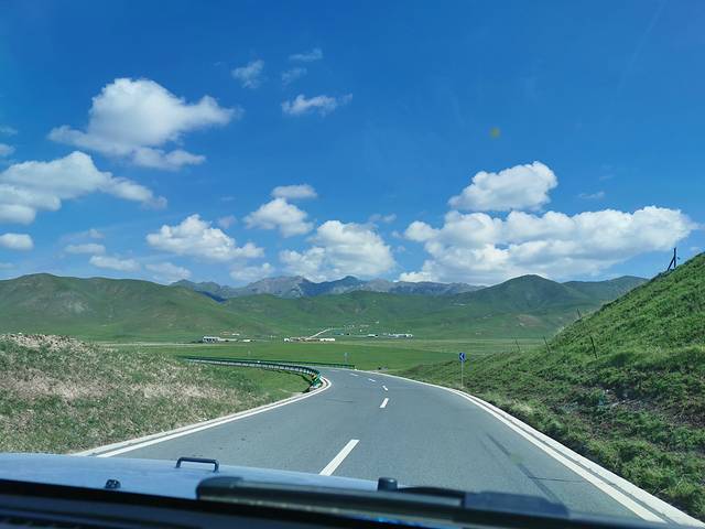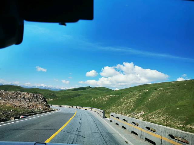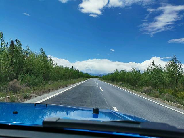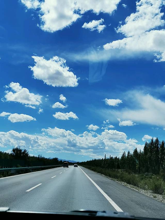 去情人湖、翡翠湖的路上的蓝天白云,风景如画。