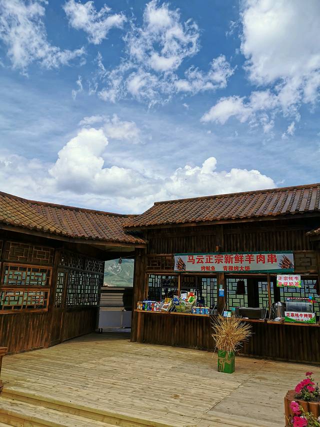 半山腰还有卖小吃的,标注是牦牛肉的,不知真假,反正也不认识,但吃起来感觉和我们平时吃的烤肠差不多呀,还给闺女买了热乎的杯青稞奶茶喝,据老板说可以缓解高原反应,也就信了。开始没有注意,等我们回来看时,我们买肠和茶的小摊竟有一个响亮的名字“马云”,老板还给我们看了他的营业证上,还真叫马云。马云老板自己介绍说,以前曾在广州开过拉面馆,卓尔山开发后就回来了,看来这也我们国家实施精准扶贫战略的一个缩影呀。
