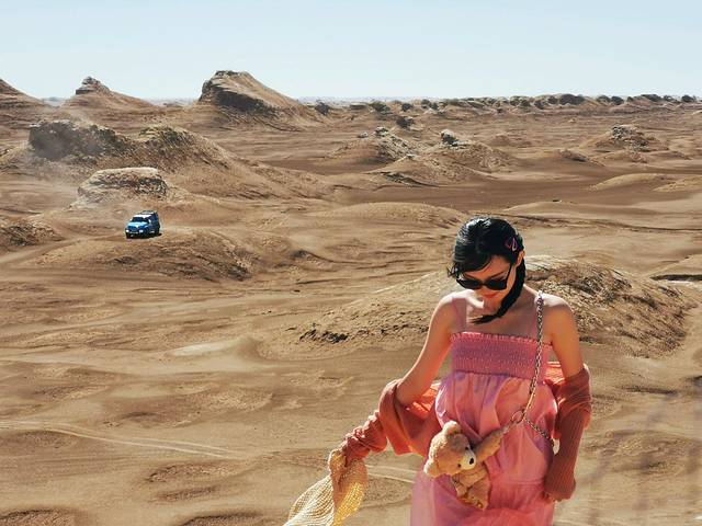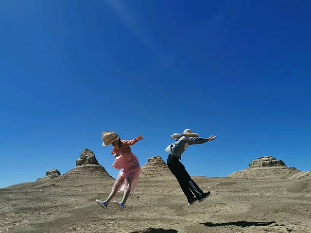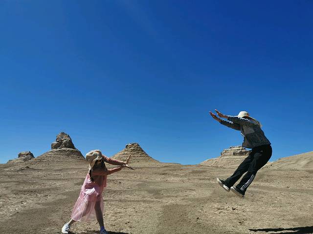 到雅丹地貌时,包车行路线的司机师傅一般都将车停在路边让客人在路旁的雅丹地貌拍照,一是省油惜车,二是一般的车也开不进去。小马师傅的越野车就是厉害,直接开进雅丹地貌深处无人地,这里拍照太瘾啦,想怎么拍就怎么拍,没人挡你镜头。来一组降龙十八掌的动作大片吧,有没有做大漠侠客的感觉?