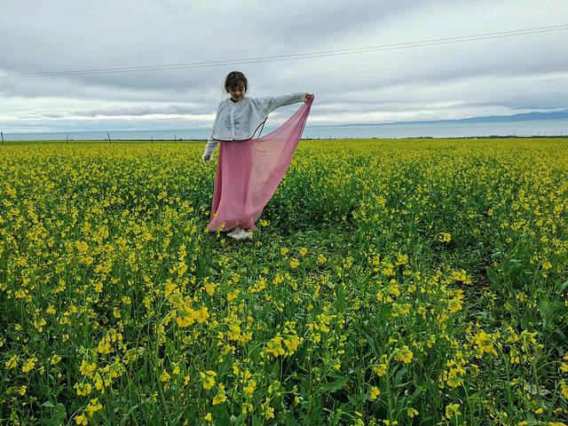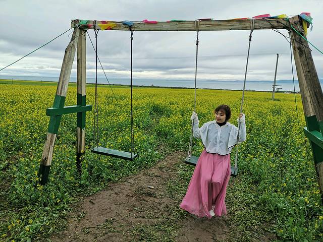 到青海湖时正赶上下雨,天气阴沉。湖边的公路旁边,有数不清的牧民自建的油菜花田直通青海湖边,车可以开到湖边,每人10元,很实惠,人少拍照也好,拍照设施如秋千、吊篮、牦牛等也都有。应该说青海湖边哪都能拍出大片来,不一定非得到官方的二郎剑景区,据说景区内人巨多。好在雨不大,不大一会就停了,远处的天慢慢开始放晴,也算老天开眼啦。