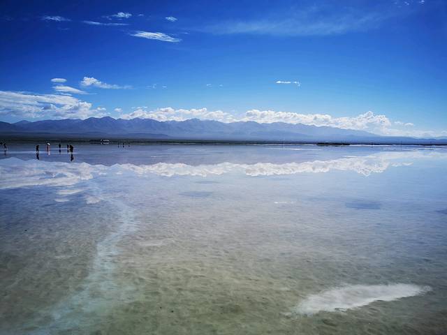 在茶卡盐湖拍照,如天气晴好,建议最好赶在上午10点前拍摄,一般近中午就开始风云变换,风一吹过水面就起波澜拍照就不漂亮啦。