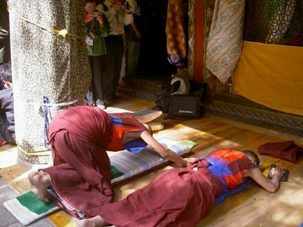 这张照片是从网上借的,塔尔寺信徒磕头是不允许拍照的。大金瓦殿的屋檐下的地板上,磕长头的男女都有,有年轻的,也有头发花白的,双手合拢,俯身,伸手向前,掌心向上,再合拢,起身,一次又一次的五体投地循环,身下正前方都有两道白色、一掌宽的痕迹,印记了心中信仰。据说,每个信徒一生中至少都会磕完十万个长头,一般年轻人要耗时2-3个月,而老年人可能要耗费将近1年的光阴。所有的这些,没有人督促,没有人提醒,也没有人检查,完全出于自觉,一种发自内心的虔诚。信仰的力量是强大的,让人的精神得以寄托,并通过善念引导人向善。