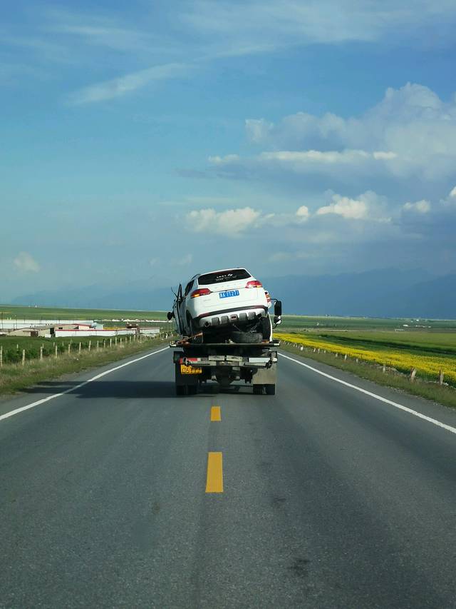 车祸中的受损车辆,车祸猛如虎。来大西北自驾游的朋友一定要注意安全呀。我当初曾计划来个大环线自驾游,但仔细考察了一下大西北的路况,还是决定包车行。事实证明这是个多么英明的决策。小马师傅不仅驾驶熟练而且对大西北各地路况了如指掌,哪里限速,哪里有急弯,哪里是长下坡,哪里修路,哪里有横风,下雨哪里湿滑,哪个路段的区间测速通行时间最低多少等等各种情况。要是我自己驾驶大环线,估计我夫人全程都不敢睡觉啦。所以来大西北就找找他吧,强烈推荐。