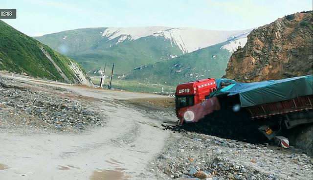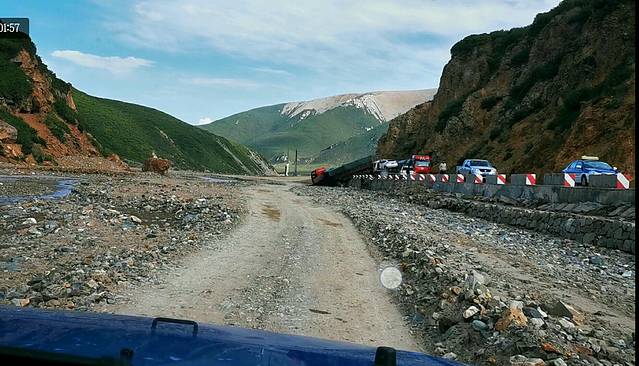 过达坂山时前方遇到车祸堵车,小马师傅凭娴熟的技术带我们从道路旁边的河水沙滩上绕行过去,这技术完全是赛车手的水平!