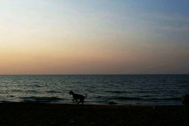 第二天起的很早,四点多一点就跑去看日出,来回踱步等了一个小时,太阳从石老人的上方缓缓升起,起初只是一片绯红,后来变成一大片的暖红,慢慢看见红色上面的日出,太阳很快就完全升起来了,海边渐渐热闹,有人带着狗散步,狗子突然奔跑起来,朝着火红的太阳,姿势矫健,宛若体操队员,至今难忘。