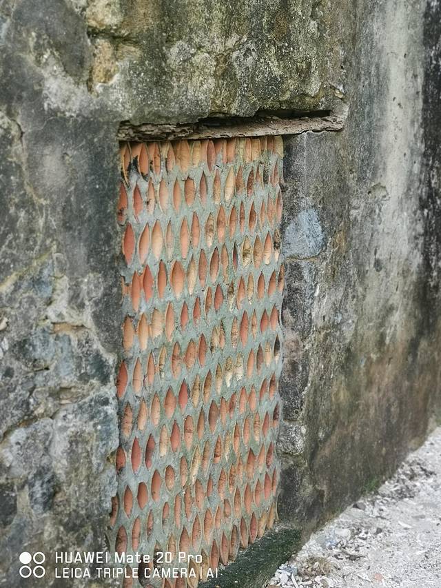 我们准备离开往回走的时候,在小路旁边的墙上,看到墙中间嵌一块像蜂窝一样的东西,我和余先生冥思苦想,也未猜出结果。这让我想起了小时候每周一次,由杨澜主次的一个综艺节目,节目的其中一个环节就是,摄像头带着观众走遍世界各地,然后让观众对一些奇怪神秘的东西进行猜测。不过节目名字记不起了,因为时间隔得太久远,