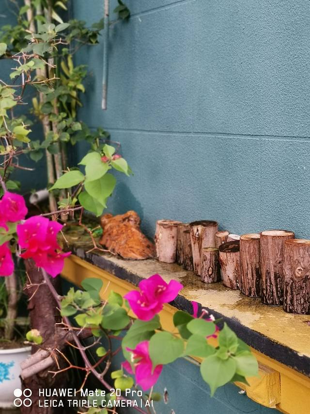 墙边摆放着高矮不等的圆木树桩