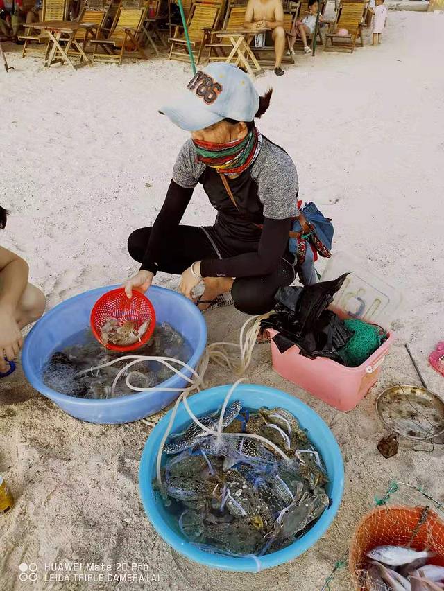 所以当我们在海边陪孩子玩耍时碰上自称刚从海上回来的渔民时,我们还是觉得挺新奇。尽管无法验证她所说的真假(朋友说很多人从市场上买来海鲜然后假扮渔民在海滩上出售,这种方式能赚更多的钱),但看着很新鲜,我们便毫不犹豫的买了些回住处。