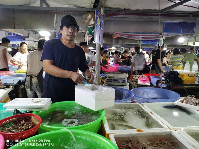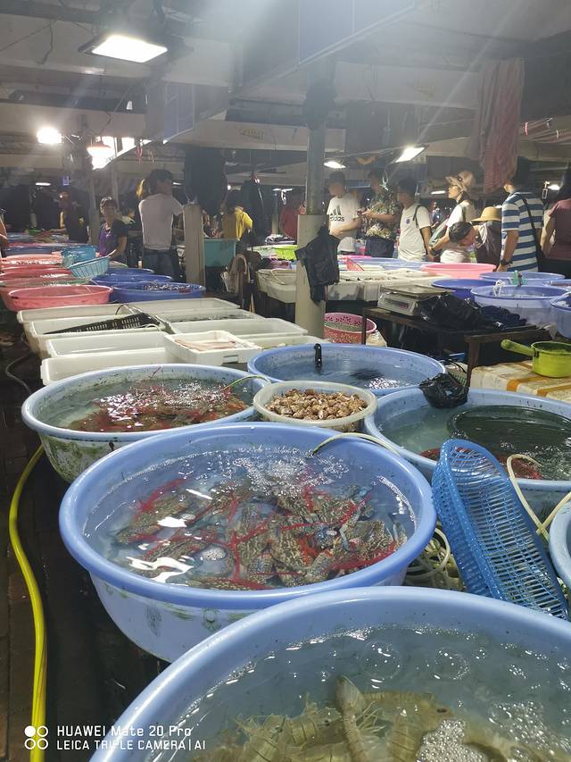 与其说我们是去买海鲜,还不如说我们是去看海鲜。平时不管是去超市还是农贸市场,能同时见到十几个品种已经觉得很丰富了,可当来到这里才发现,原来自己曾经也是井底之蛙。看得出,来这里买或者看的人,基本都是外地游客,人很多,我们在本来也不宽敞的摊位通道里拥挤着这看看,那瞧瞧,各种询价,各种对比,逛完一圈下来后,心里有数之后最后选定一家进行购买。原本以为自己已经是采购的精明之人,然而真相却是,我们和其他外地游客一样,不过是在那些海鲜老板的各种套路中自以为是罢了。对孩子们来说,这些都是俗事,从来与他们无关,他们眼里充满了惊奇和兴奋,因为于他们而言,这里不是海鲜市场,而是地地道道的海洋公园。