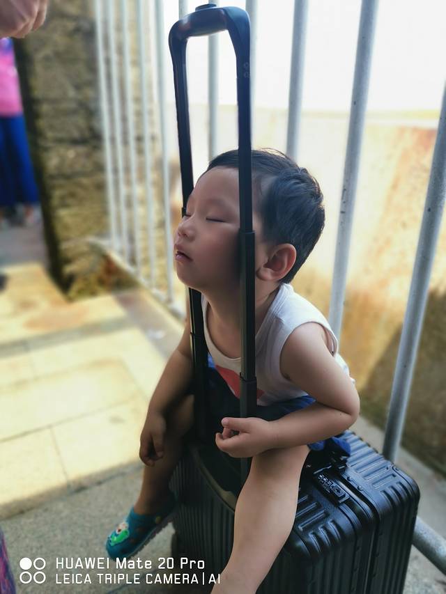 你们或许不相信,这是我们早上六点出门,在清晨的太阳下仅仅两小时的疲惫状态。我跟余先生开玩笑说,我们这不像是在享受旅行,而像是在带娃逃难哦。