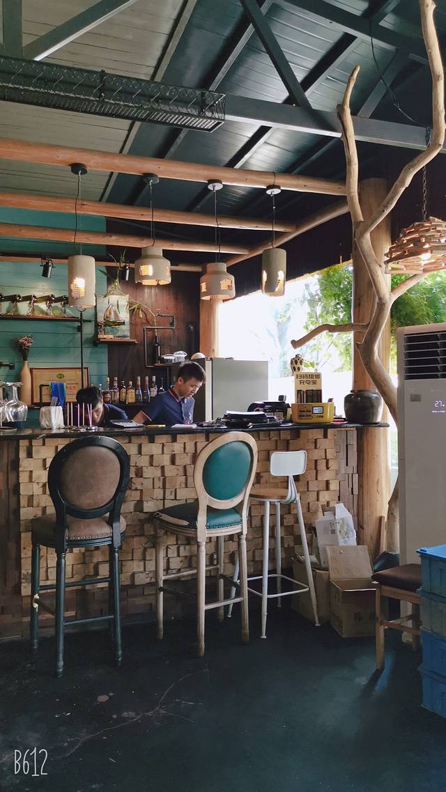 回北海的船票是中午一点,正好我们有一早上的时间收拾行李和填饱肚子,当然,也包括去“七七糖水店”喝糖水。当我们推开店门,店内开足的空调让人全身清凉,在如此酷热的天气里能使烦躁的心情瞬间转为平和。我们进去的时候,店员正在吧台里忙活着,环视了一下店内摆设,装修是典型的地中海风,蓝色的墙壁,墙上安装了一些可以摆放物品的置物架,还挂了一幅船舵木板画,靠墙和靠窗两面都安放了复古风的桌椅。