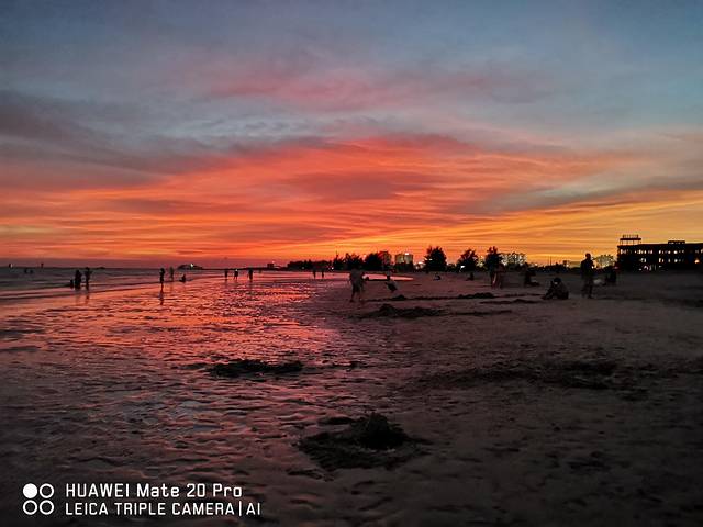 日落后染红了整个沙滩的漫天霞光