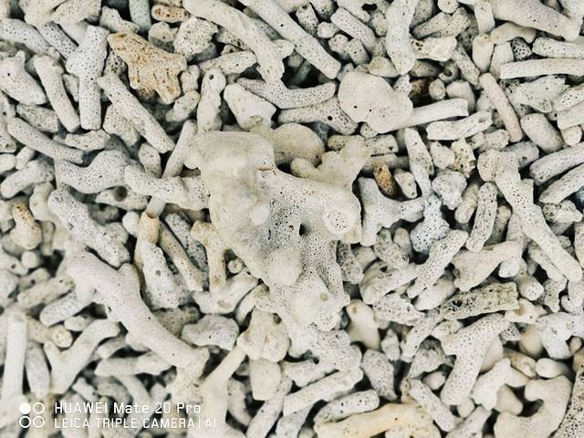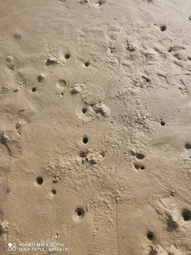如果说“贝壳沙滩”这个名字是因盛产贝壳而得名,那我想这一定已经是很久很久以前的事情了。因为我们来到这里时,只看到了一些被海浪冲碎的珊瑚石和布满了神秘小孔的泥滩(据说这种神秘小孔是能找到沙滩小螃蟹的标志呢)。
