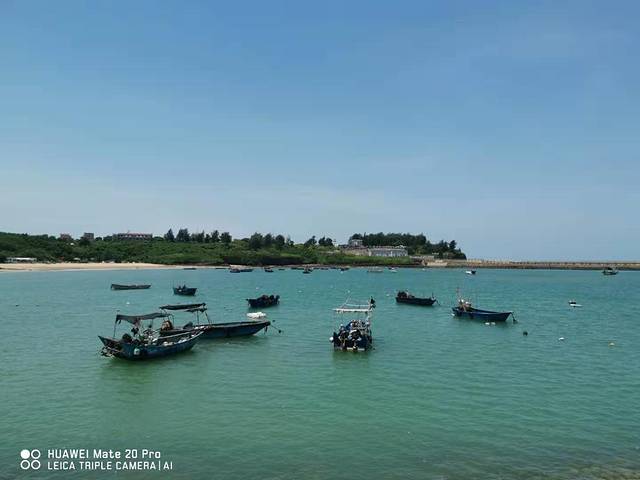 幸好,侧过脸来,身旁那一滩蓝绿色的海水,上面安静的停泊着七八只陈旧的渔船。远处时不时传来海上客轮的汽笛声。这一幅宁静的画面让我联想到岛上渔民们日出而作,日落而息的闲适生活。这样的生活状态平凡而真实。