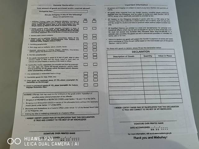 领队会给一张菲律宾入境申请表,跟团、自由行都会填的,下机后入关时要用)