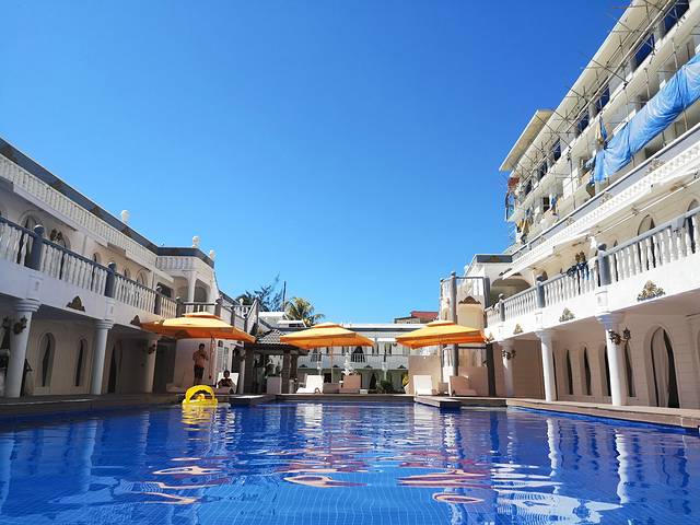 因为长滩就是让大家休闲的地方,所以我们也不急都出去耍,先在酒店里休息一下,酒店游泳池里去泡一下,(酒店只包含早餐,早餐相当不错,味道很好)(下午很晒人,我们每天都是在酒店吃晚早餐后上午出去逛一下,然后吃了午餐后小逛一下就回酒店休息,到下午4点的样子,我们又才出去,避开最太阳最大的时候)后几天我就不多做介绍,每天的耍法都差不多,很休闲的很轻松。要玩海上浮板的,白天贵的时候600P索都可能,傍晚的时候100P索,我朋友他们2人坐滑翔伞2100P索,落日风帆5人1300P索,价格靠嘴巴讲哈,我跟我媳妇娱乐项目基本上都没有参加,不是因为钱的原因,什么浮潜呀滑翔伞这些都在马来的时候玩了多次,就只是想休闲的在这岛上晒太阳和逛逛,长滩岛整个到近走路,远就坐火三轮从几十P索到200P索不等,长滩镇中央有ATM机,建议还是带成都银行的金卡方便些, 下面直接上图,
