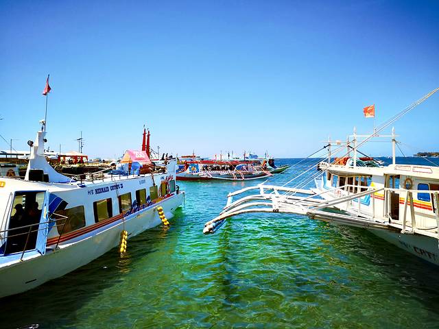 过关出机场大门找到地陪,跟着上大巴车到码头,整个来回全程,行李不用你自己拿,自己只拿随身包就是了,有菲哥全程帮忙,最后回程时把小费给导游就行了,1个小时多点车程到码头,领队去拿了船票,分发给大家(船票单程是2张一人,一张船票一张税票,这2张一张都丢不得),进了码头,上船,菲国特有的八爪船