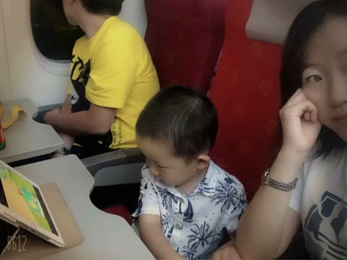 订机票时忽略了要提前去机场,导致了我们大人们早上三点半就开始陆陆续续的起床洗涮收拾,我订了五点的车去机场,所以我们都收拾好之后四点四十开始叫孩子起床,孩子还是很给力的叫了两声就起来了也没有哭闹(最不可思议的是这一天就没有再补觉了一直到晚上八点才睡)
