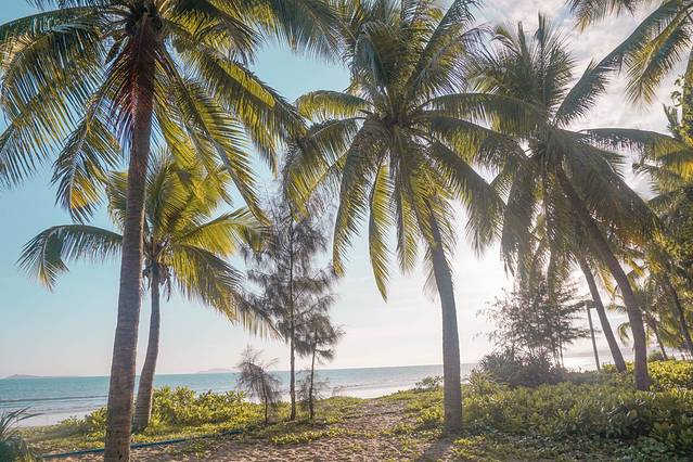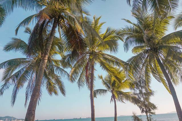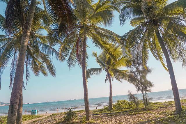 踩着松软的沙子,行走在看不到尽头的椰林里,伴随着阵阵的海浪声,一时间什么烦恼都消失殆尽,眼中所见除了美好依然是美好。
