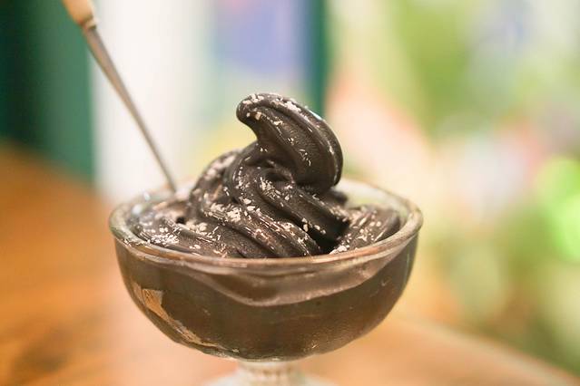 夏日炎炎,我也是忍不住点了冰淇淋尝一尝。这个看起来黑乎乎的是椰子灰冰淇淋,因为没有放任何添加剂去定型所以冰淇淋融化的速度很快。它不算很甜,却有独特的味道,口感很微妙。