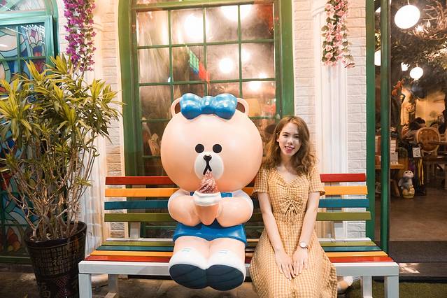 门口前那张彩色椅子上坐着一个在吃雪糕的布朗熊,童心未泯的我忍不住和它合照!它可爱的模样,也就成为了店里最值得拍照打卡的一个地方。