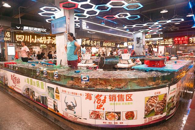 奥特莱斯海鲜广场和市区的第一市场一样都有好多海鲜档口,一个个肥大的海鲜在透明的水族箱子里张牙舞爪~看着就想把它们收揽到肚子里。