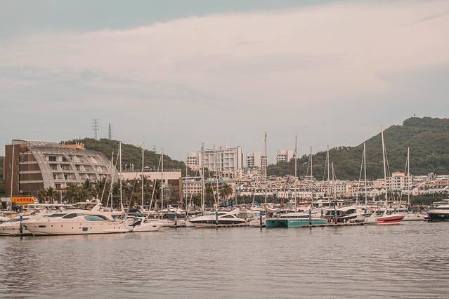 在三亚除了关乎海边的一切娱乐之外,还有一个地方引起了我们的注意。在半山半岛帆船港的区域,有一片像欧洲风情一样的建筑。我们是打滴滴前往,直接定位半山半岛帆船港就可以了。下了车之后首先就看到了“WELCOME半山半岛帆船港”几个大字,而我们的目标就在它的对面。