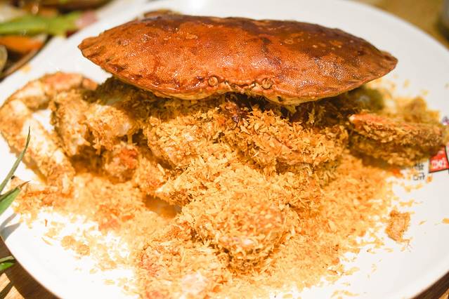 避风塘蟹也算是粤菜里的一道特色美食,是一道常见的菜式。它的精髓是那蒜蓉的独特风味,吃起来能够感受到蒜蓉的甘口焦香的独特之处。脆而不糊,蒜香味与辣味、豉汁结合达到了口味的平衡。