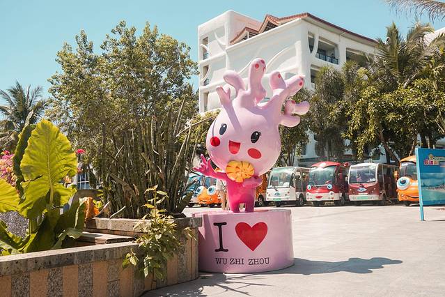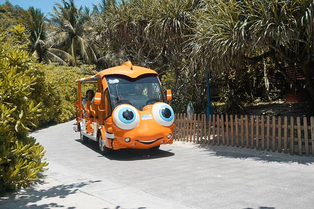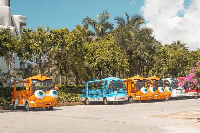 因为天气酷热的原因,我们打算就在这里纯走走。来到这里就像是来到童话世界,因为这里有很多可爱的卡通呀~这卡哇伊的海洋萌物应该是园区的代表人物吧。大到景区门口都是它的雕像,小到垃圾桶;电瓶车都是它的模样。