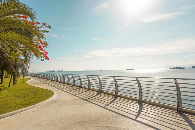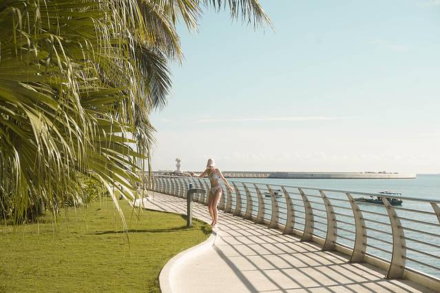 沿海长廊一路走去,左边是蓝天白天大海,右边是椰林草地泳池,时不时还有穿着泳衣从身边经过的外国小姐姐,非常地养眼。
