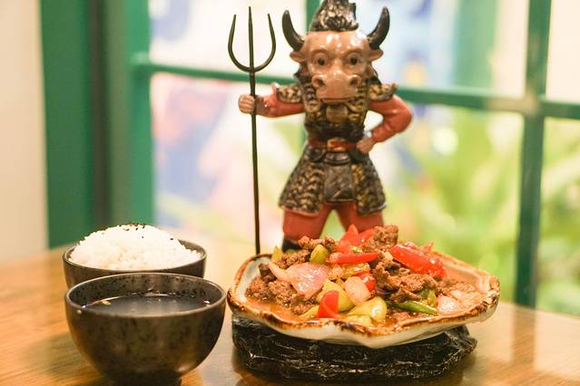 这摆盘也是特别有阵势的。看来来头不小呢,吃起来牛肉嚼劲中微微带着一点点辣,新嫩多汁入味,口感很赞呢~