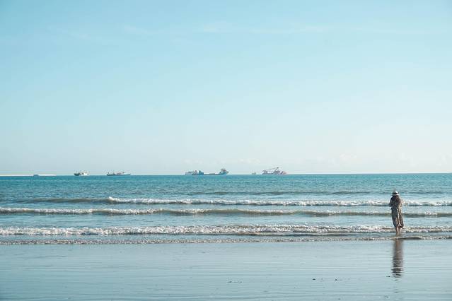 车子仿佛在一个度假酒店就把我们放下了,我们就沿着地图上,越往海岸线的地方靠近。