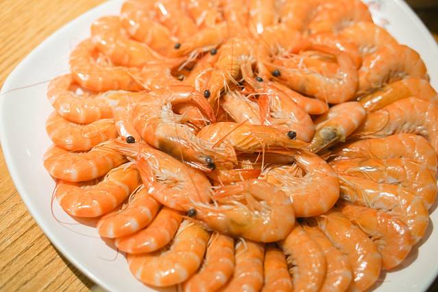 白灼虾简简单单的煮法也是很考验虾肉的新鲜程度,得有耐心地把虾壳拨开,里面就是澄亮的虾肉,蘸上酱油。饱满Q弹的虾肉,一口就是一份满足。