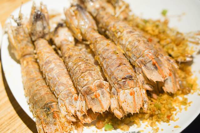 椒盐皮皮虾是我的最爱,每逢吃海鲜,我都是必点它的。轻轻把皮皮虾的壳拨开,就能看到那平滑的皮皮虾肉,椒盐的咸味搭配冷冷的皮皮虾肉,吃得很是过瘾。
