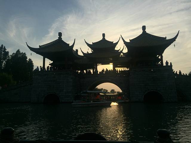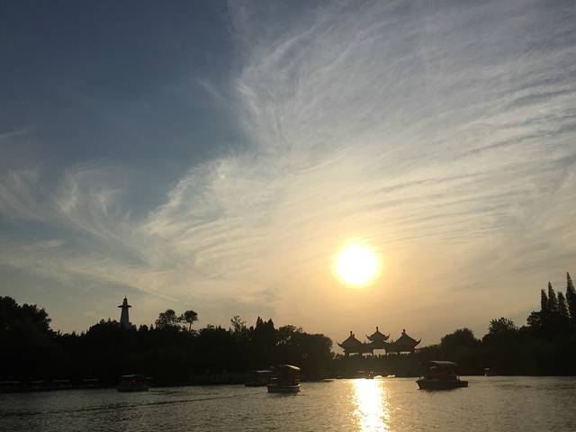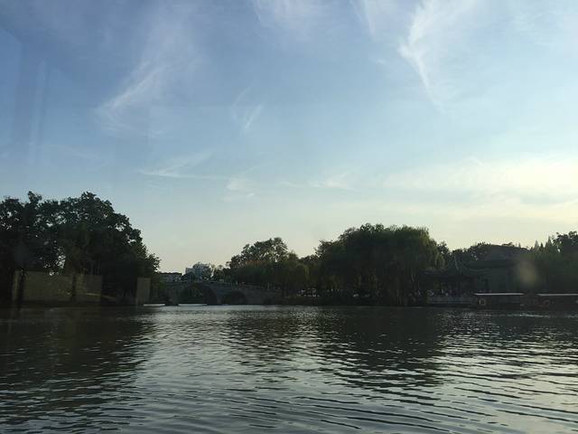 吃完来到瘦西湖,直接买了船票,乘船游瘦西湖,到达一个游船的终点后往瘦西湖的大门口走出来,游玩瘦西湖,个人目光能看到的和西湖相比的话,瘦西湖其实也不小,只是没有西湖那么有名气吧,景色也不错。