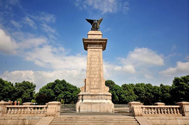 当年的外滩边上,有一尊极其重要的地标式雕塑——“和平女神像”。这尊雕像在上海沦陷时期,被日军拆毁。而在影视乐园,又重现了这尊有着“上海第一碑”之称的“和平女神像”。