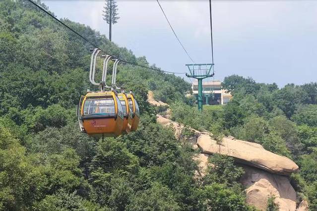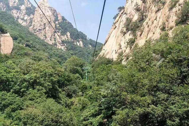 穿过幽谷禅堂,附近便是索道,坐上索道一路向西,往下瞧奇峰异石,萌氤绿树,山上的美景一览无余。