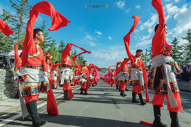 甘南各县,派出近千人的演员队伍,演出前在通道上热烈迎宾。