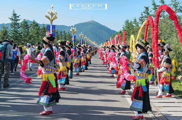 数千人的演员队伍,沿着几公里的通道无缝排列,载歌载舞欢迎四海嘉宾。