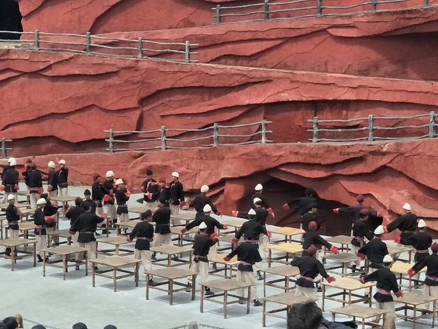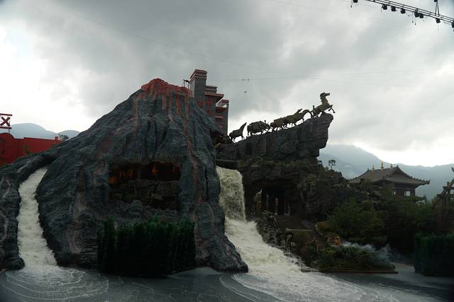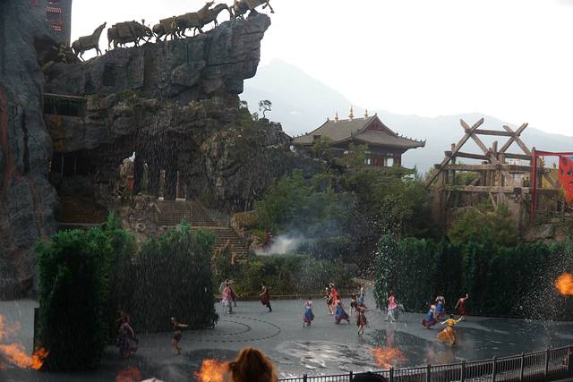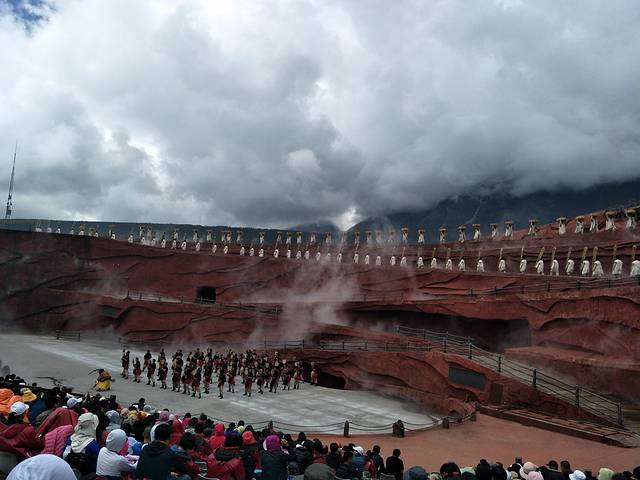 《丽江千古情》我们订得是下午17:00的观众贵宾席,另外两个演出《大地震》和《丽江恋歌》的演出分别是下午15:15——15:50、16:10——16:30,园区12:30开园,所以我们13:30到的景区,进入景区拿到景区介绍地图才知道从开园开始就有各种精彩的小表演看,哎!只好可惜啦!