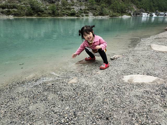 天气晴朗,因此蓝月谷的水是湛蓝湛蓝的,非常清澈。