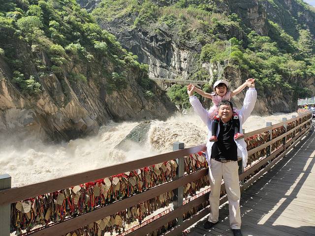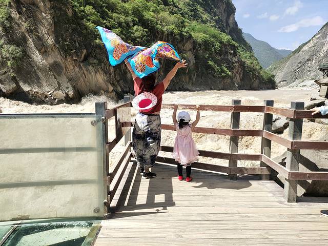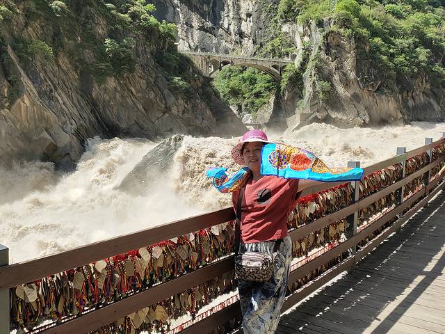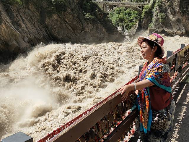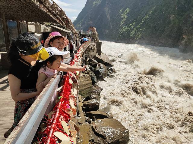 虎跳峡完全可以自己步行的,没必要花钱坐轿子。江水触碰岩石腾空而跃如猛虎扑食之势,声势浩大,相当壮观。