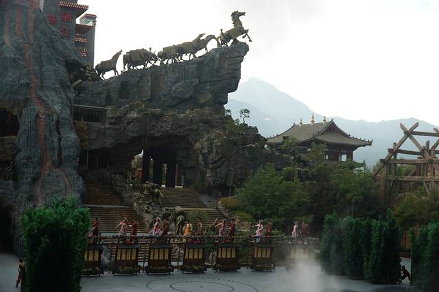 这个景区我是没在计划当中的,本来是提前订得今天的高铁回昆明去民族村玩。但是跟我们香格里拉一个团的一个游客说《丽江千古情》的表演是不容错过的,所以我们在回丽江的路上就跟康辉旅行社的工作人员预订了丽江千古情景区套票,改签了高铁票。