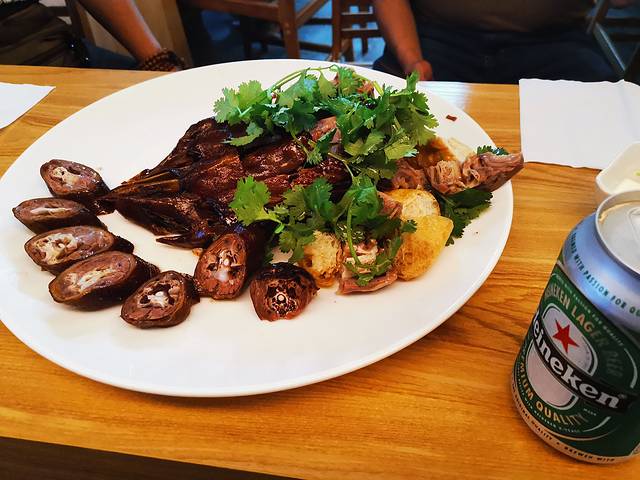 午休后出发,晚九点多到秀山服务区,如愿以偿下榻,遗憾的是牛杂汤锅九点就关了,喝小酒,卤鸭翅鸭脚鸭菌肝佐酒,吃牛肉面,为省240元过路费不下道,