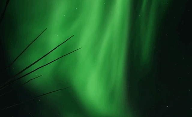 当天预告的极光等级是3至4级,但是我们看到的是最高级5级,特别绿特别亮。一开始的时候很弱,肉眼很看见的很少,David就带着我们果断去往下一个点看,结果到那一下车,我一返头就看见一抹绿光在天上摇曳,晃来晃去及其震撼。我们五个人的手机除了一个阿姨的华为能够拍清极光,别的都不能。在我们羡慕着阿姨疯狂拍照的时候,David从车上拿了单反和三脚架下来,帮我们拍了超多照片,就听见咔咔咔的声音。其实这么冷的天零下三四十度,戴了手套拍照还是挺冷的,我看着这些照片就想到David,实在是感动!
