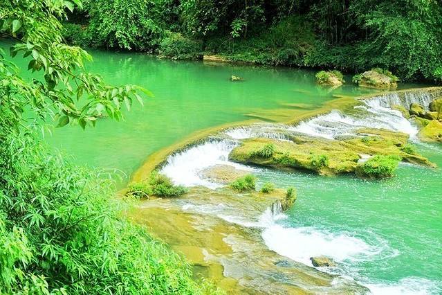 果树景区如果你进一个景点后一定要绕完一大圈才能去到坐车点(所以一定要穿运动鞋!!!千万不要穿高跟鞋)之前听去过的朋友说上半段没什么好看的景点,我们直接走得下半段。天星桥的下半段主要以高老庄,银链坠潭,天星洞为主,刚进天星桥的时候会在地上看到生日石头,然后进去就是西游记里面非常出名的猪八戒背媳妇的高老庄,往前走就能看到银链坠潭瀑布,因为7月雨季,瀑布显得额外的壮观,现在的水坠落的声音非常震撼。再往前走就是天星洞,是喀斯特地貌溶洞,在里面转了一圈就走到上车的地方了。