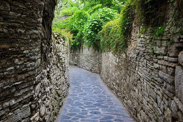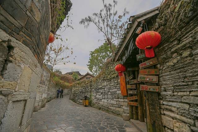 在甲秀楼附近简单的吃了午饭,饭后就开车去了青岩古镇,从甲秀楼到青岩古镇开车大概50分钟,青岩古镇背街是比较出名的,是青岩最具特色的一条石巷,路面是青石板铺成的,经过几百年的冲刷、磨砺,以光可鉴人。街边的院墙是一片片石块垒成的,窄窄的小路十分幽静,当时就是《寻枪》让这条青岩背街火了起来。